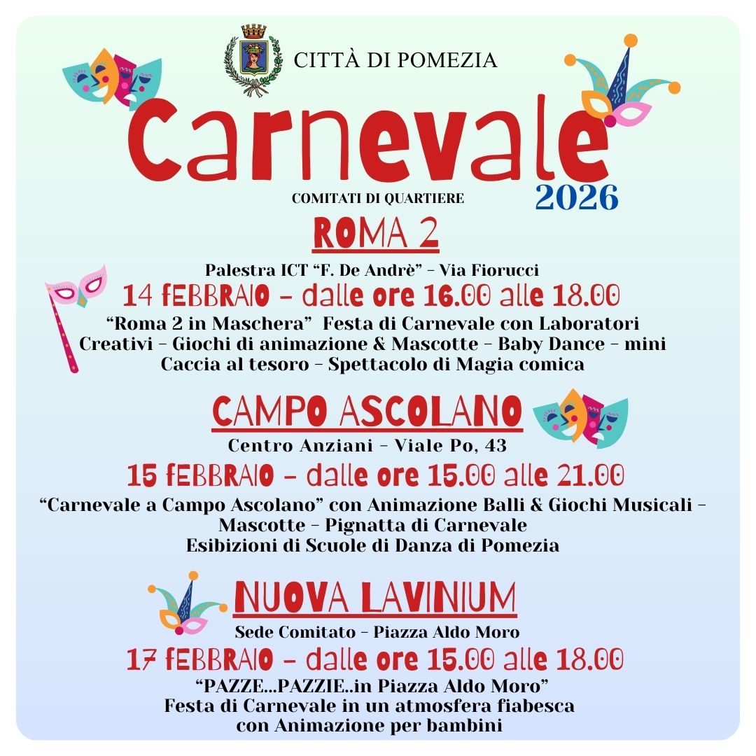 Carnevale 2026 a Pomezia – Domenica 15 Febbraio